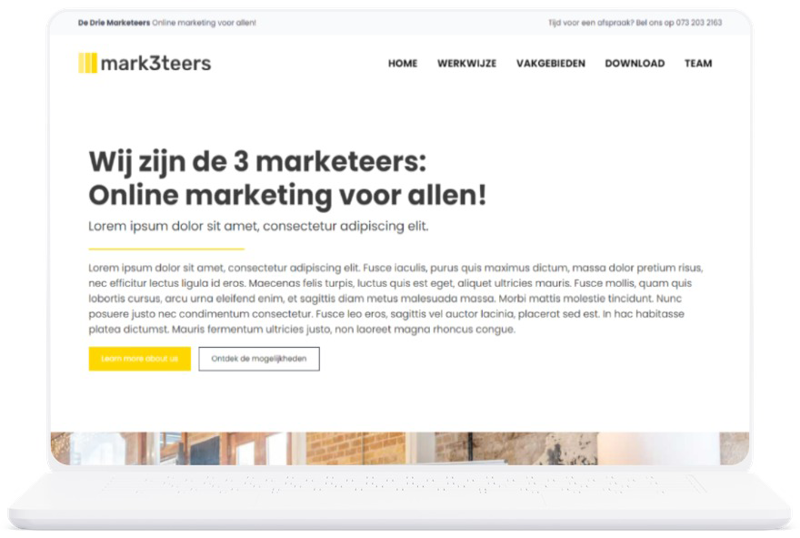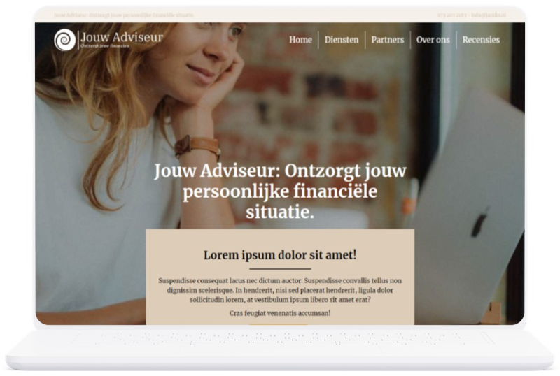 Kies een website sjabloon wat je aanspreekt en wij bouwen hem in no-time om naar een website in jouw huisstijl. Liever iets unieks? Ook dat is uiteraard mogelijk.